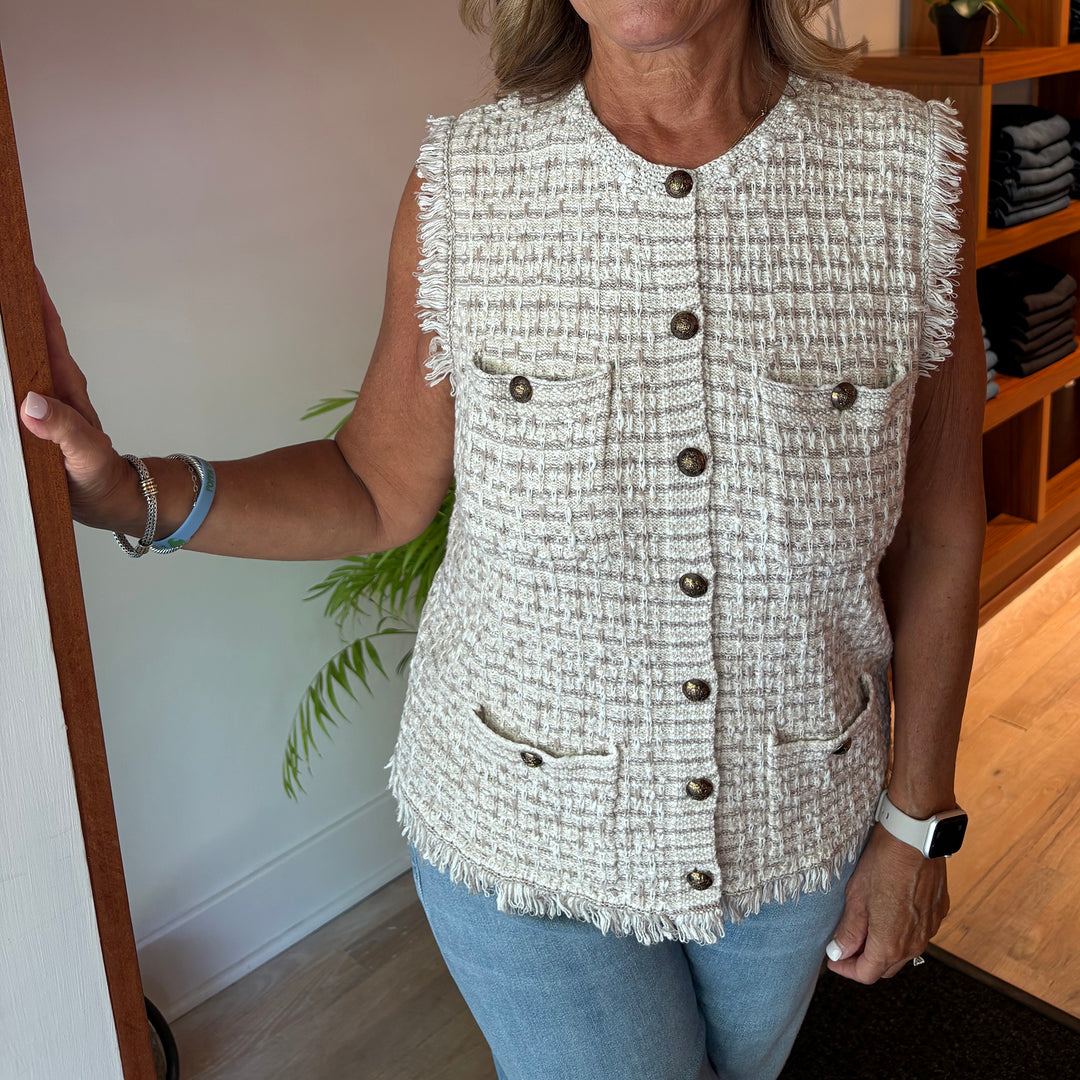 AUTUMN CASHMERE TWEED VEST WITH FRINGE