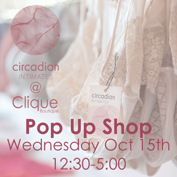 Join us Wednesday October 15th from 12:30-5:00 for an expert bra fitting and shopping a curated collection from Circadian Intimates!