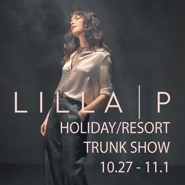 JOIN US MONDAY OCT 27TH THROUGH SATURDAY NOV 1ST FOR THE HOLIDAY/RESORT 2025 LILLA P TRUNK SHOW. SHOP FROM THEIR COLLECTION OF EVENING ATTIRE, SWEATERS, LOUNGEWEAR AND MORE! ENJOY 15% OFF ALL TRUNK SHOW ORDERS.
